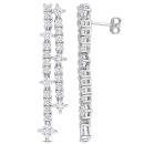 Elevate your elegance with these Women's 5 3/4 CT TGW Created White Sapphire Fashion Post Earrings in Silver. Meticulously designed, these double linear drop earrings embody a perfect blend of delicate charm and sparkling allure. The created white sapphire gemstones, totaling 5 3/4 carats in weight, exude a captivating brilliance that adds a touch of glamour to any ensemble. The combination of square-cut and round-cut gems creates a dynamic and shimmering effect. Set in lustrous silver, these earrings are a testament to fine craftsmanship, making them a thoughtful gift for her or a cherished addition to your jewelry collection. Their delicate and elegant design adds a touch of understated beauty to your look, embracing the spirit of timeless elegance and fashionable grace. Celebrate the allure of created white sapphire with these exquisite post earrings that capture the essence of enduring style and the captivating beauty of gemstones.