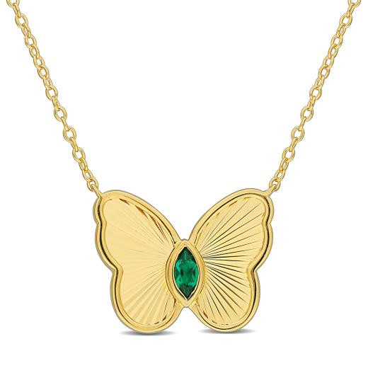 Add a touch of whimsical elegance to your ensemble with our charming 1/4ct TGW Marquise-Cut Created Emerald Butterfly Stud Earrings in Yellow Plated Sterling Silver. Each earring features a delicate butterfly design adorned with vibrant marquise-cut created emeralds, exuding a captivating allure. Crafted in yellow plated sterling silver, these earrings offer a stylish and versatile accessory suitable for any occasion. Whether you're dressing up for a special event or adding a pop of colour to your everyday look, these earrings are sure to flutter into hearts and make a statement with their exquisite beauty.