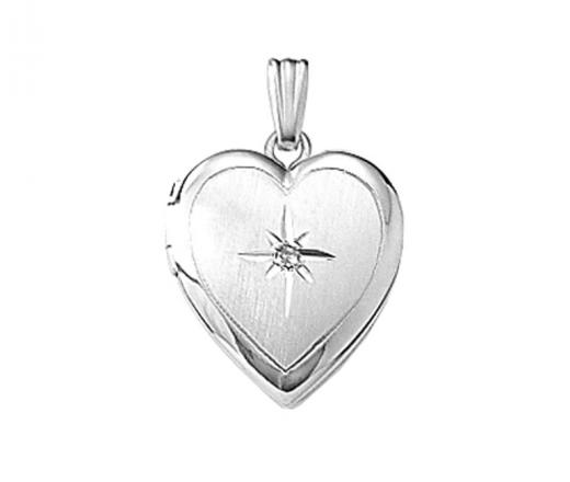 10K white gold lockets set a shimmering diamond make great keepsakes. This heart shaped locket offers a place for a special treasure.