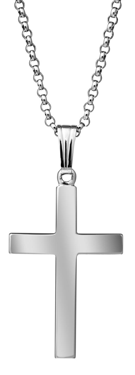 This sleek and timeless pendant features a polished, domed cross design, crafted in sterling silver. The smooth, rounded edges catch the light beautifully, creating a sophisticated and subtle shine.