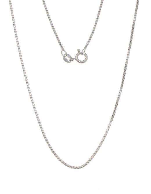 The Sterling Silver 20" Box Chain offers a sleek, modern look with its square links that create a smooth, polished finish.