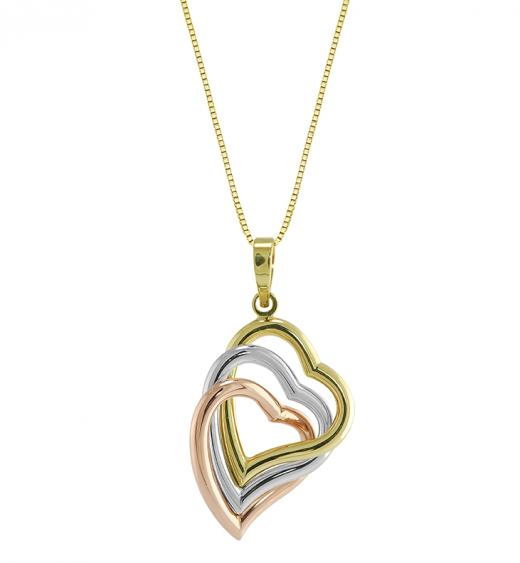 Show your love with this three-coloured hearts of gold pendant. The perfect necklace for any look featuring three gold hearts linked together as an ultimate symbol of your love.