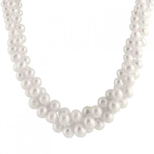 3 Rows white graduated freshwater pearl necklace. Sterling silver clasp.