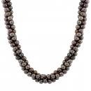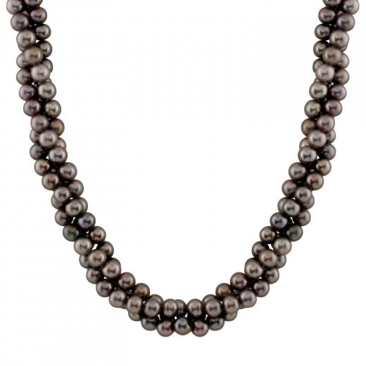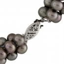 5-6mm 3 rows black potato freshwater pearl necklace, 14k white gold fisheye clasp, 18".