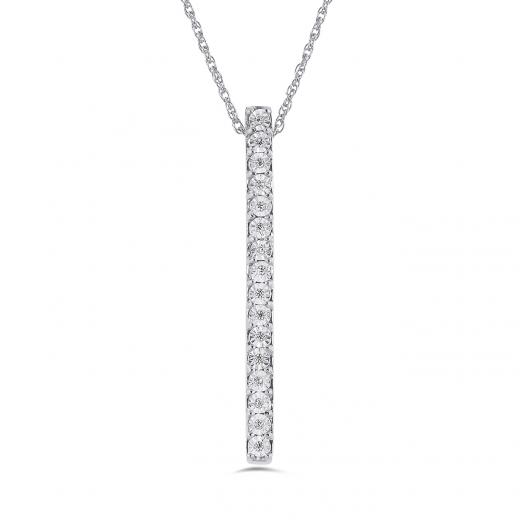 Captivate with this modern classic designed by Bella Moda- this line pendant features a sparkling 0.04ctw of round diamonds artfully crafted in shimmering sterling silver. Suspended for an 18" rope chain, this piece is fantastic worn on its own or layered for a fashion forward look. Bella Moda - Beauty is always in fashion.
