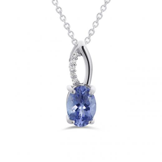 This tanzanite and diamond pendant is crafted in sleek sterling silver and features an oval cut tanzanite accented by a swirl of white topaz gemstones. This pendant is a perfect choice for someone who loves a timeless look!