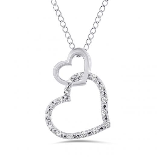 Let this sweet pendant be a charming metaphor of your love and support. Crafted in shimmering sterling silver, the two heart diamond design are linked in an enduring embrace. Showcasing 0.05ctw of sparkling diamonds, this pendant dangles from an 18" cable link chain.