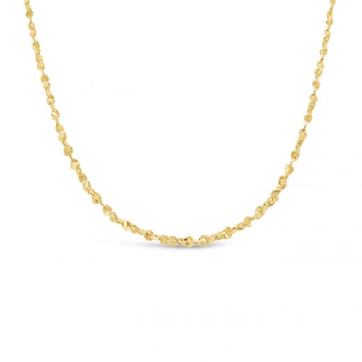 The 10K Yellow Gold 20" 0.9mm Serpentine Chain is a delicate and graceful accessory. Crafted from high-quality 10K yellow gold, this chain features the distinct serpentine link design, characterized by its intricate and sinuous pattern that resembles a serpent's scales. With a length of 20 inches and a slender width of 0.9mm, this chain offers a subtle and elegant look suitable for various occasions. The unique texture and flexibility of the serpentine chain add a touch of sophistication to any outfit, making it a versatile and stylish choice for both casual and formal wear. Its refined appearance and gold craftsmanship make it a timeless addition to your jewellery collection.