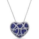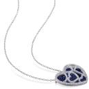 This bold and bright created blue and white sapphire clustered heart necklace is crafted in lustrous sterling silver with black rhodium plating and features 156 round-cut created white sapphires paired with 129 round-cut created blue sapphire in a unique clustered multi-heart design. Enhanced with a high-polish finish, this diamond necklace is a perfect choice for that special someone. This heart necklace is sure to make a standout addition to any jewellery collection.