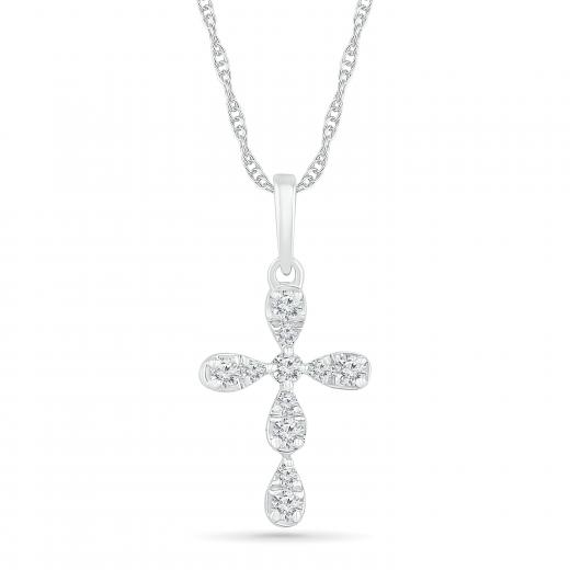 The combination of the clean, white gold setting and the brilliance of the diamonds creates a timeless and elegant piece. This pendant is perfect for expressing faith and style, making it an ideal accessory for everyday wear or a meaningful gift for a special occasion.