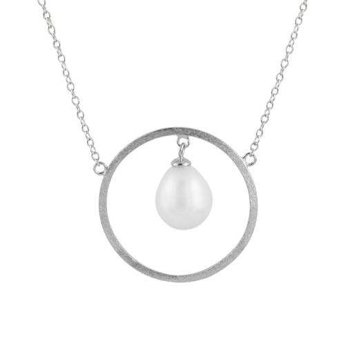 An 8-8.5mm white freshwater pearl pendant with brushed sterling silver rhodium plated