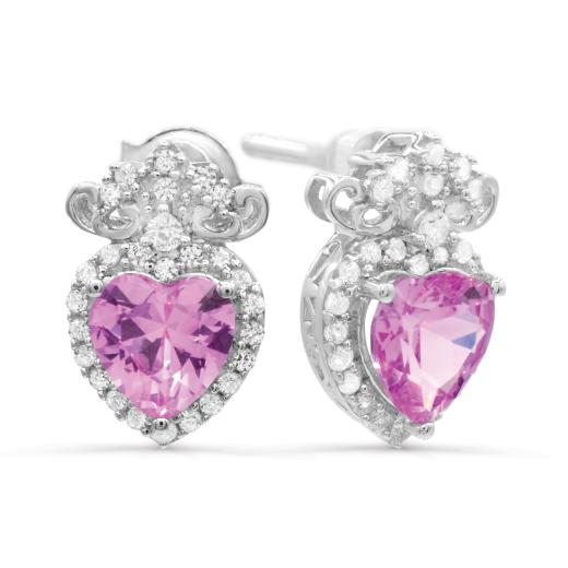Sterling Silver Created Pink Sapphire & Created White Sapphire Earrings