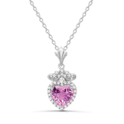 This gorgeous sterling silver fashion pendant features a created pink sapphire heart centre stone crowned by dazzling created white sapphires. The perfect everyday piece for your jewellery collection. Buy it for yourself or for that special someone in your life.