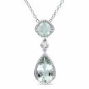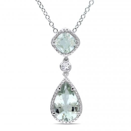 This stylish necklace features a pear and cushion-cut green quartz with round-cut created white sapphires set in sterling silver. This lovely pendant is hung on a cable chain and is secured with a spring ring clasp.