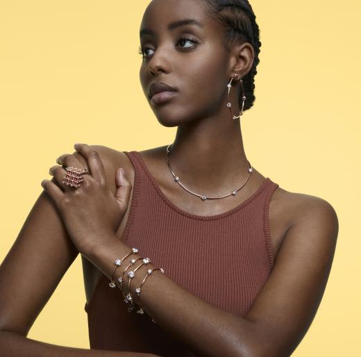 Exude elegance and sophistication with the Swarovski Constella Rose Gold-Tone Choker. Featuring dazzling Swarovski crystals set in a luxurious rose gold-tone design, this choker offers a modern, celestial-inspired look that adds a brilliant touch to any outfit.