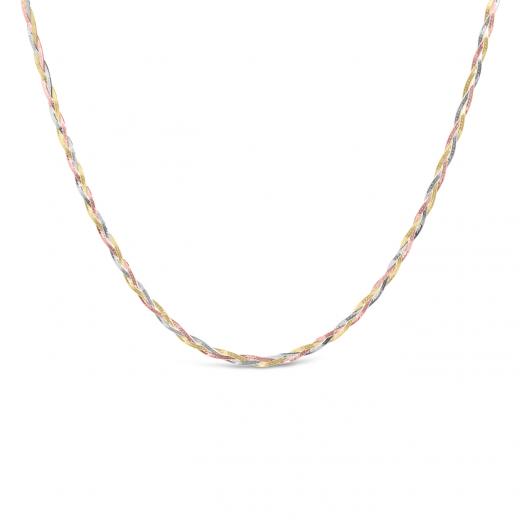 Crafted from 10-karat yellow, white, and rose gold, this necklace features three intertwined strands in a beautiful herringbone pattern. The tri-colour combination adds depth and richness to the piece, making it a versatile and timeless accessory. With a length of 16 inches plus a 2-inch extender, this necklace can be adjusted to suit various necklines, ensuring that you shine with enduring beauty and the captivating charm of tri-colour gold.