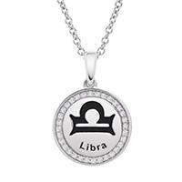 Fashioned in sterling silver and set with 0.10ctw of glimmering diamonds, this Libra zodiac pendant is suspended from an 18" cable link chain secured with a spring ring clasp. Libra- The Scales of Justice: September 23 to October 22