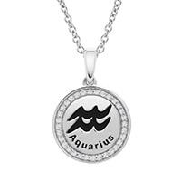 Fashioned in sterling silver and set with 0.10ctw of glimmering diamonds, this Aquarius zodiac pendant is suspended from an 18" cable link chain secured with a spring ring clasp. Aquarius- The Water Bearer: January 20 to February 18