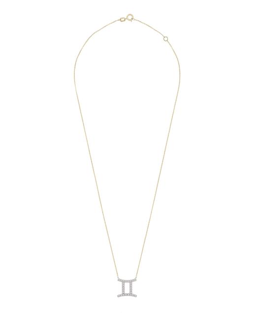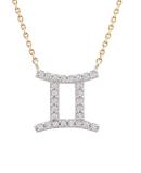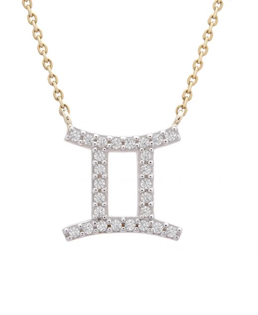 Created in sunny yellow gold and set with 0.10ctw of sparkling round diamonds, this Gemini pendant- from the Zodiac Collection- is suspended from a split cable link chain secured with a spring ring clasp. Gemini- The Twins: May 21 to June 20