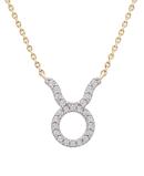 Created in sunny yellow gold and set with 0.10ctw of sparkling round diamonds, this Taurus pendant- from the Zodiac Collection- is suspended from a split cable link chain secured with a spring ring clasp. Taurus- The Bull: April 20 to May 20