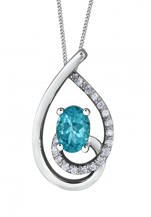 This stunning apatite and diamond necklace is crafted in 10K white gold and features an oval-cut, prong-set apatite at the centre, accented by a swirl of shimmering diamonds. Enhanced with a high polish finish, this alluring gemstone and diamond necklace is sure to make a standout addition to any jewellery collection. Choose this gorgeous piece either for yourself or as a special gift for someone you love.