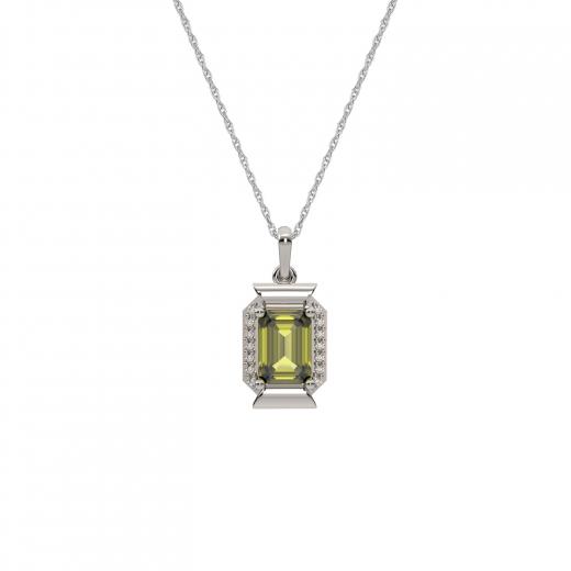 This modern necklace is crafted in 10K white gold and features an octagon cut genuine peridot accented with shimmering diamonds. Enhanced with a high polish finish, this magnificent pendant is suspended on an 18-inch cable chain and is secured with a spring ring clasp. This gorgeous necklace is the perfect addition to any jewellery collection.