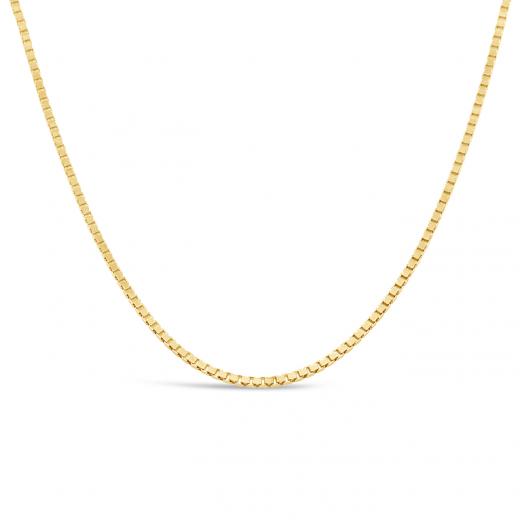 Sleek and versatile, this 18-inch yellow gold box chain is a staple of effortless elegance. With its delicate 1.3mm links, it offers a subtle shimmer that enhances any pendant or stands beautifully on its own. A timeless piece designed to complement every style with grace and sophistication.
