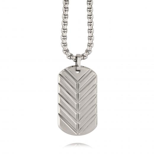 The Stainless Steel 22" Chevron Dog Tag is a durable and stylish accessory made of stainless steel. It often features a dog tag pendant with a chevron design, offering a contemporary and rugged look suitable for casual wear.
