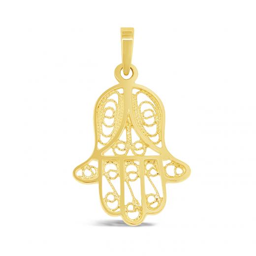 Hand of Fatima or Hamsa, is a talismanic symbol that believed to protect them from harm against evil forces. Open up all the abundance and goodness the Universe has to offer with this 10K yellow gold Hamsa pendant. (Chain not included)