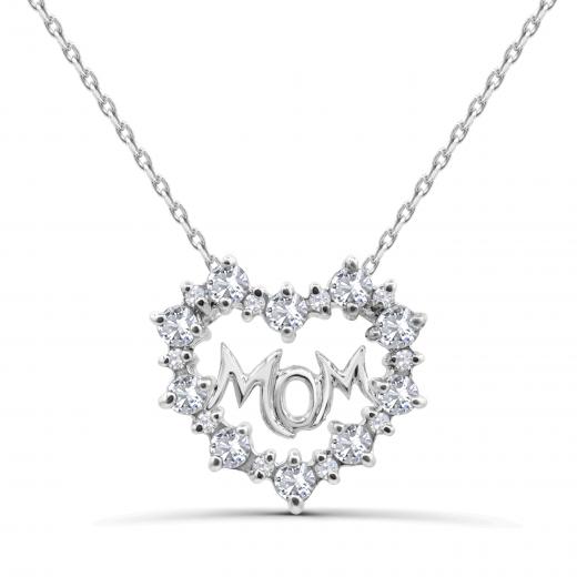 Show your mom that she’ll always be in your heart with this beautiful sterling silver & created white sapphire pendant. Featuring Mom, delicately written and accented with sparkling round created white sapphires. This pendant will ensure that mom knows just how much you love her.