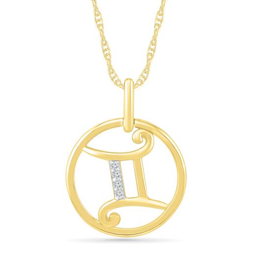 A 10K Yellow Gold Gemini Diamond Pendant is a beautifully crafted piece of jewellery designed to represent the Gemini zodiac sign. Fashioned from 10K yellow gold and adorned with diamonds, this pendant features the symbol associated with Gemini—a depiction often representing the twins.