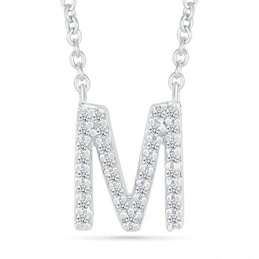 Delicate yet dazzling, this sterling silver and diamond 'M' initial necklace captures the beauty of personal style with a touch of sparkle. Each diamond glistens gracefully, accentuating the elegant initial for a look that’s both timeless and uniquely yours—a perfect blend of sentiment and sophistication.