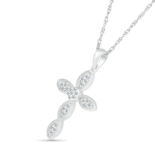 The 10K White Gold 0.11CTW Diamond Cross Pendant is a timeless and cherished piece of jewellery that symbolizes faith and spirituality. Let this pendant be a radiant expression of your devotion and a treasured addition to your jewellery collection.