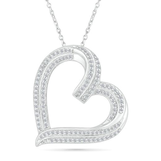 Adorn your neckline with the timeless charm of the Sterling Silver 0.45CTW Diamond Heart Pendant. This pendant is a celebration of enduring love and sophistication, featuring a heart-shaped design crafted in lustrous sterling silver. The 0.45 carats of diamonds create a dazzling display, adding a touch of timeless beauty to the piece.
