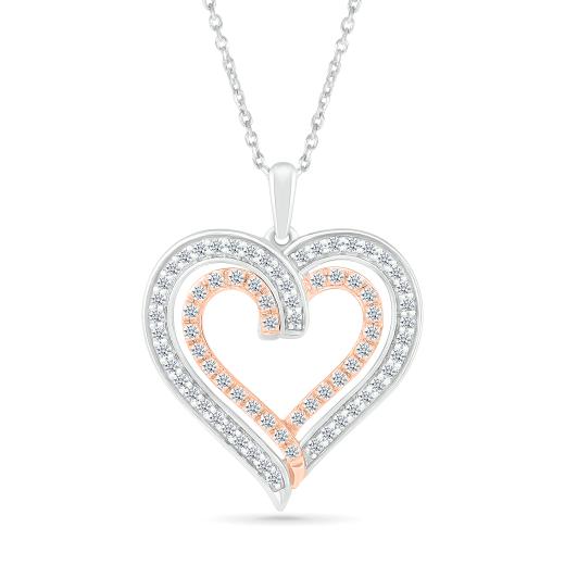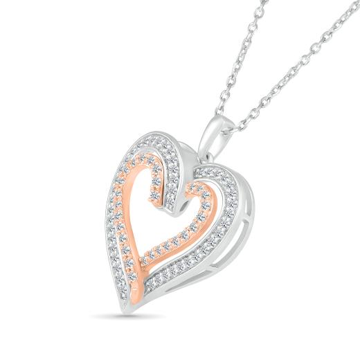 A harmonious blend of love and elegance! This pendant is a graceful and meaningful symbol, featuring a heart-shaped design crafted in sterling silver with a touch of rose gold. The 0.45 carats of diamonds create a dazzling display, adding a touch of timeless elegance to the piece.