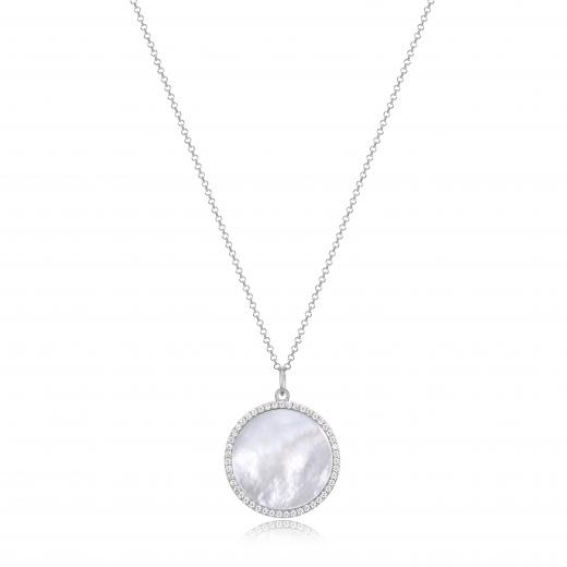 This necklace features a stunning mother of pearl pendant, known for its iridescent, lustrous finish. The natural beauty of the mother of pearl is enhanced by its smooth surface and subtle shimmer, creating a sophisticated and elegant look.