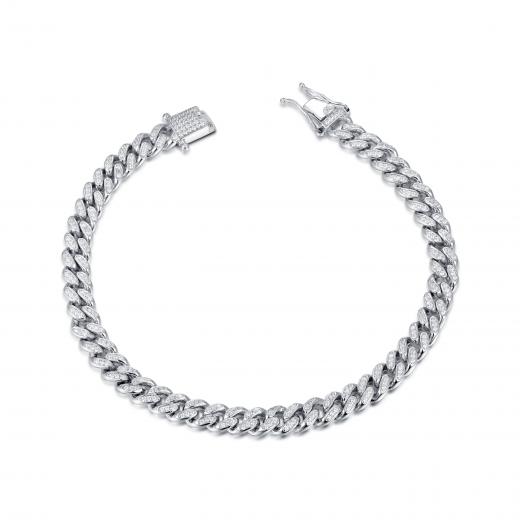 Sterling Silver Cubic Zirconia 8.5" Set Curb Bracelet