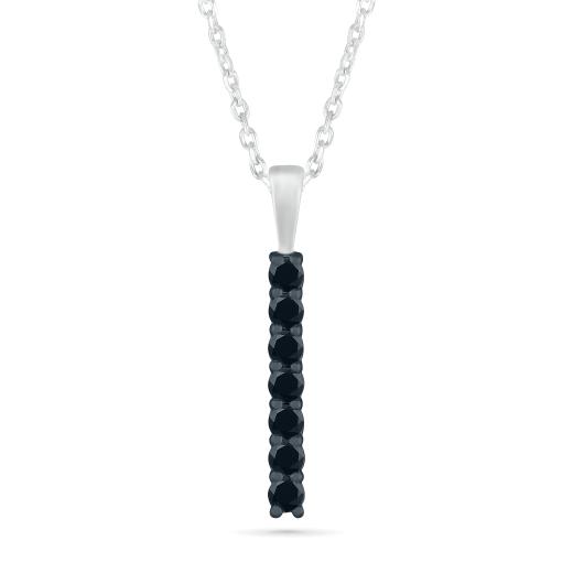 Crafted in sterling silver and adorned with striking black diamonds totaling 0.23 carats, this pendant captivates with its sleek and linear design. The contrast between the deep hue of the diamonds and the silver setting creates a striking piece that embodies refined sophistication and understated luxury.