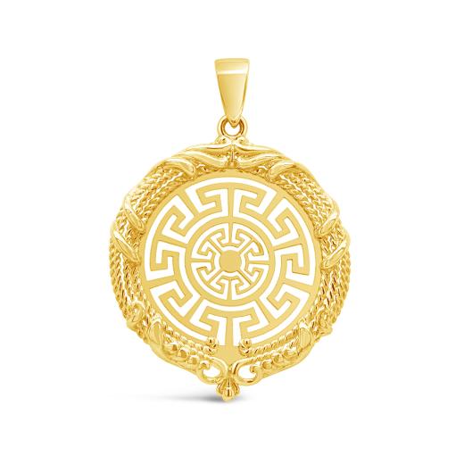 Historically people wore medallions to invoke protection, guidance, luck, or as reminders of where they're going or what they've overcome. This beautiful greek inspired medallion is crafted in lustrous 10K yellow gold and is sure to become a favourite in your jewellery collection no matter why you choose to wear it. (CHAIN NOT INCLUDED)