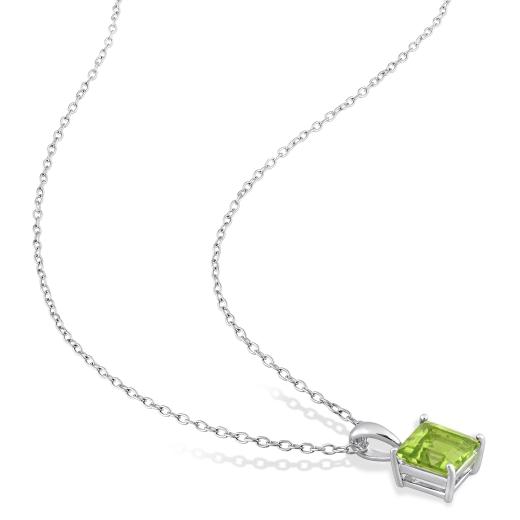 Keep up with the trend with this stylish Peridot Solitaire Pendant with Chain. Crafted in luminous sterling silver, this glamorous pendant features a princess-cut, 4 prong-set peridot gemstone (6x6mm) in a classic basket setting. Polished to a brilliant shine, this enchanting pendant is suspended on an 18-inch round cable chain secured with a spring ring clasp. An accessory that will make you the talk of the town.