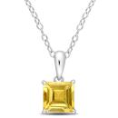 Go out of your way and impress her with this classy Citrine Solitaire Pendant with Chain. Crafted in sparkling sterling silver, this glamorous pendant features a princess-cut, 4 prong-set citrine gemstone (6x6mm) in a classic basket setting. Polished to a brilliant shine, this charming pendant is suspended on an 18-inch round cable chain secured with a spring ring clasp. This flawless pendant will always remind her of your unconditional commitment.