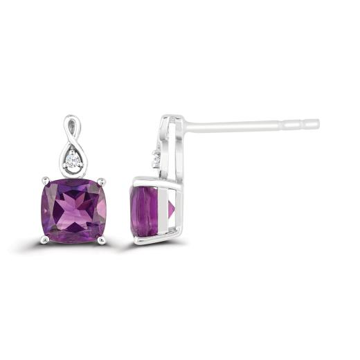 This beautiful infinity pendant is crafted in lustrous white gold and features a cushion cut amethyst at its centres accented by a shimmering diamond. This pendant is sure to add a touch of elegance to any ensemble. A perfect gift for a February-birthday in your life!