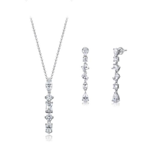 This cubic zirconia pendant and earrings set is crafted in sterling silver in a dramatic drop style design. Add elegance and sophistication to any look with this exquisite set.