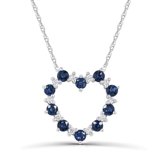 This lovely ruby and diamond heart necklace is crafted in 14-karat yellow gold and features prong-set rubies alternating with shimmering diamonds. This necklace makes a perfect elegant and sophisticated addition to any jewellery collection. Choose this gorgeous piece either for yourself or as an ideal symbol of eternal love and devotion. A perfect gift for that special July birthday in your life.
