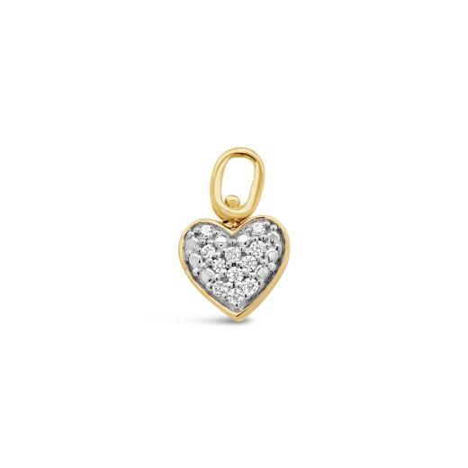 Radiate love and elegance with our 10K yellow gold heart charm, embellished with exquisite diamonds. This versatile charm is the perfect addition to your jewellery collection, designed for effortless mix and match. Pair it with our matching Charmables heart earrings to symbolize affection and add a touch of sophistication to any outfit, making a heartfelt statement wherever you go.