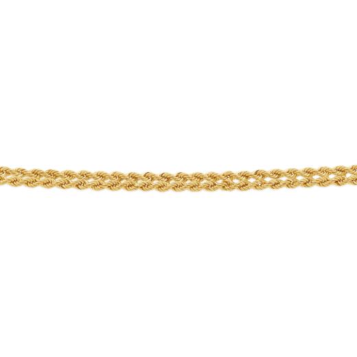 This 10K yellow gold 18" semi-solid double rope chain offers a timeless, elegant design with interwoven links, providing a luxurious, lightweight feel perfect for everyday wear.
