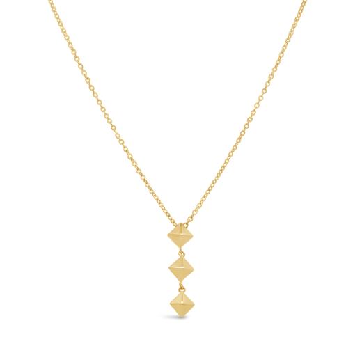 This 14K yellow gold geometric drop pendant, with an adjustable 17" + 1" chain, offers a modern and striking design. The bold, geometric shape creates a captivating focal point, while the polished gold adds a touch of luxury. Perfect for adding a contemporary flair to both casual and formal outfits, this pendant is a sophisticated statement piece that effortlessly enhances any look.