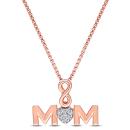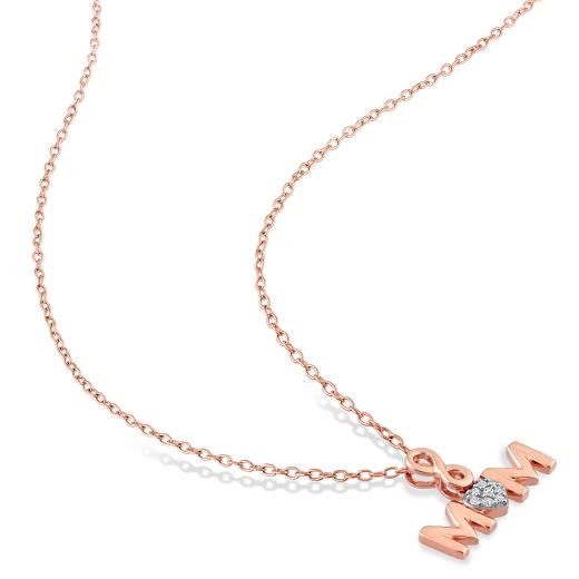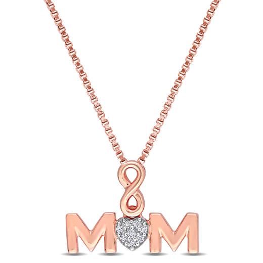 This heartfelt Diamond Accent "MOM" Pendant with Chain in Rose Silver, a touching tribute to the extraordinary bond between mother and child. Crafted with delicate precision, this pendant features the endearing inscription "MOM" adorned with sparkling diamond accents, adding a touch of brilliance and sophistication. The warm hue of rose silver lends a soft and feminine touch to the piece, making it a timeless and elegant accessory for any occasion. Suspended from a matching chain, this pendant serves as a constant reminder of maternal love and appreciation. Embrace the sentimentality and beauty of this "MOM" Pendant, destined to be treasured for a lifetime.