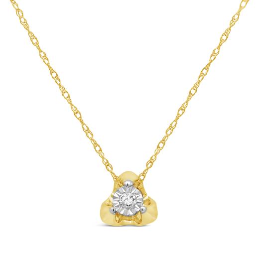 This elegant solitaire diamond pendant is set in 10K yellow gold, featuring a single sparkling diamond that exudes timeless beauty. The minimalist design allows the diamond to take center stage, offering a refined and classic look. Perfect for adding a touch of sophistication and luxury to any outfit, this pendant is ideal for everyday wear or special occasions.