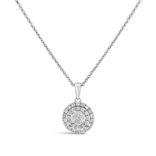 The 0.25CTW diamond bouquet pendant in sterling silver features a stunning arrangement of sparkling diamonds, delicately set to create a beautiful, floral-inspired design